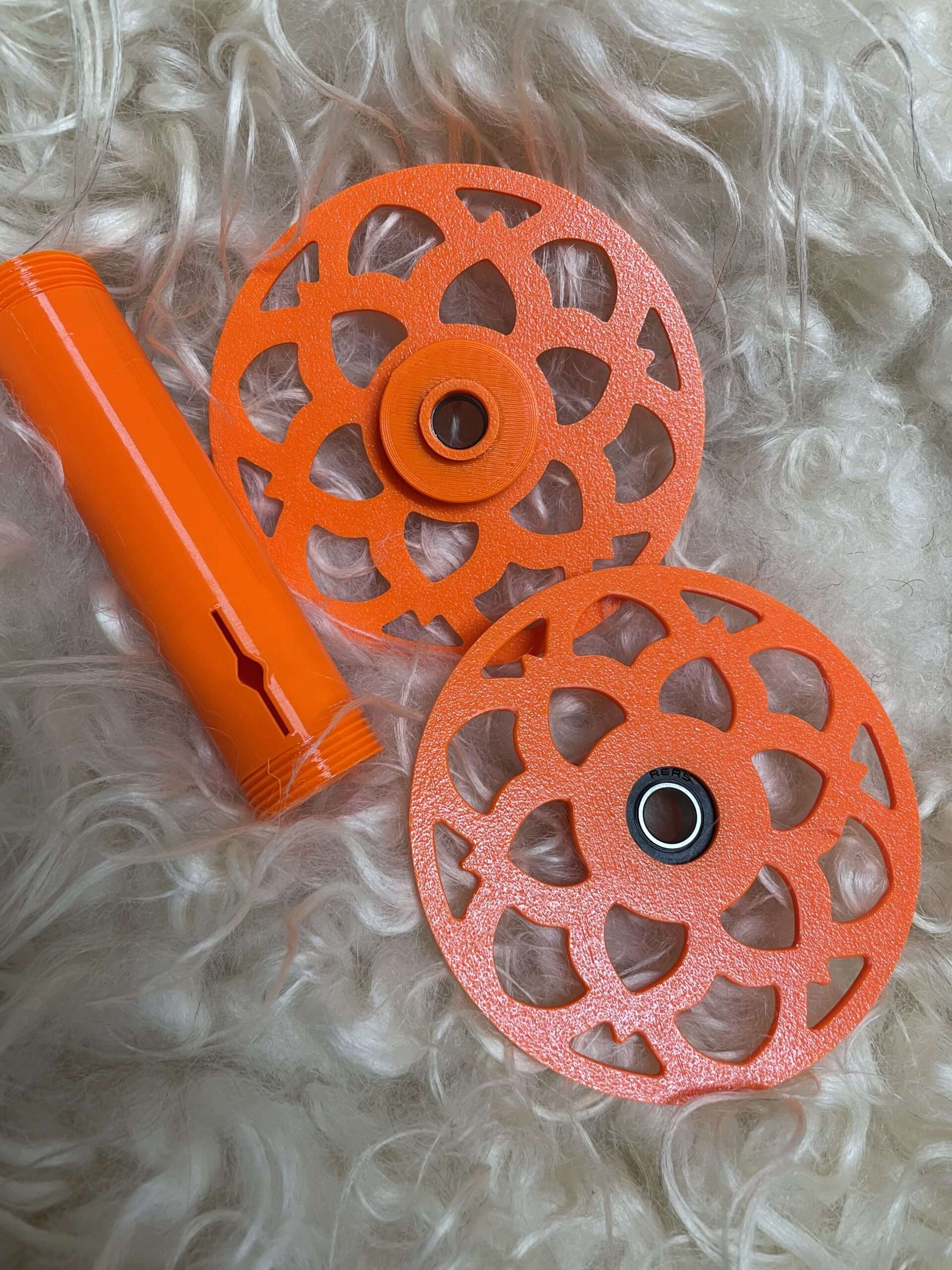 Frisk oransje snelle til Eel Wheel 6.0 og 6.1 med vanlig mønster. Sterkere farge enn bildet viser. Denne er laget i Petg materiale. Petg tåler litt høyere temperatur og egner seg derfor bedre til tvinning på høy hastighet.